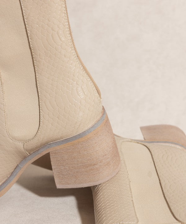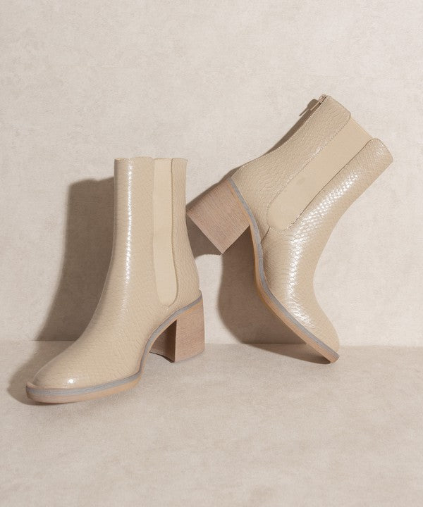 Short boots, Ankle boots, Booties, Retro, Block heels, Elastic Panel, Snake, Croc