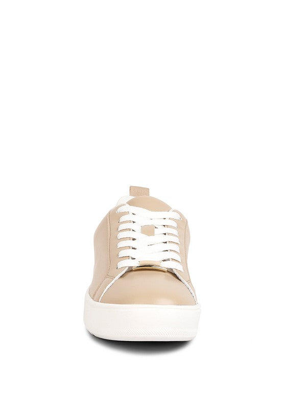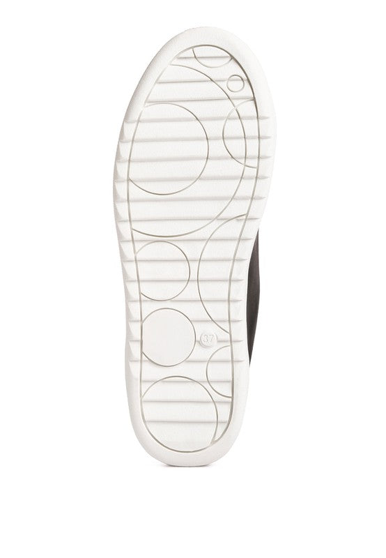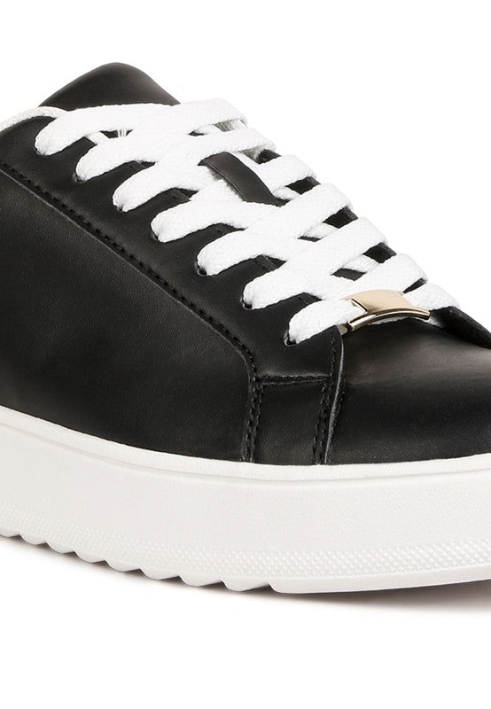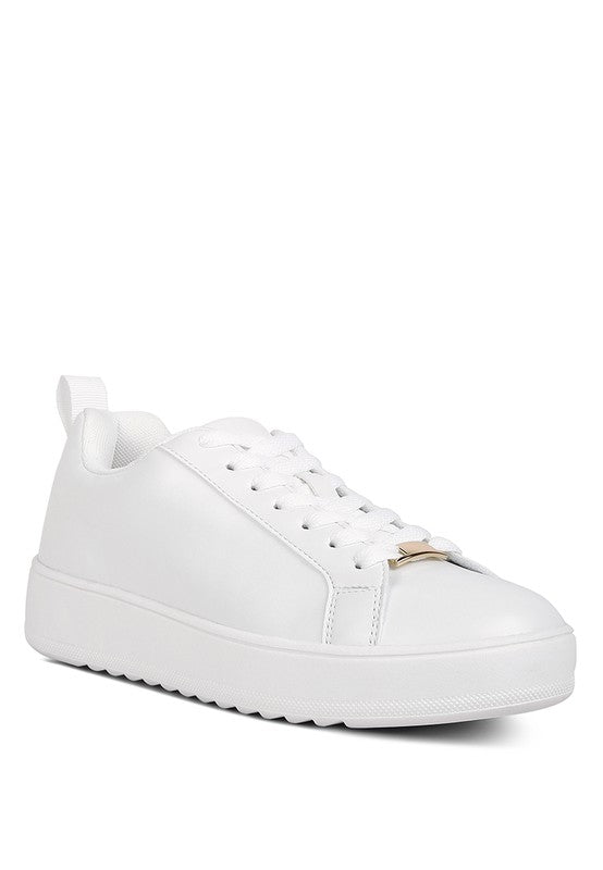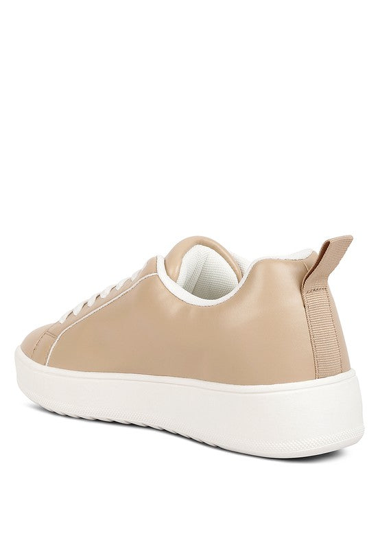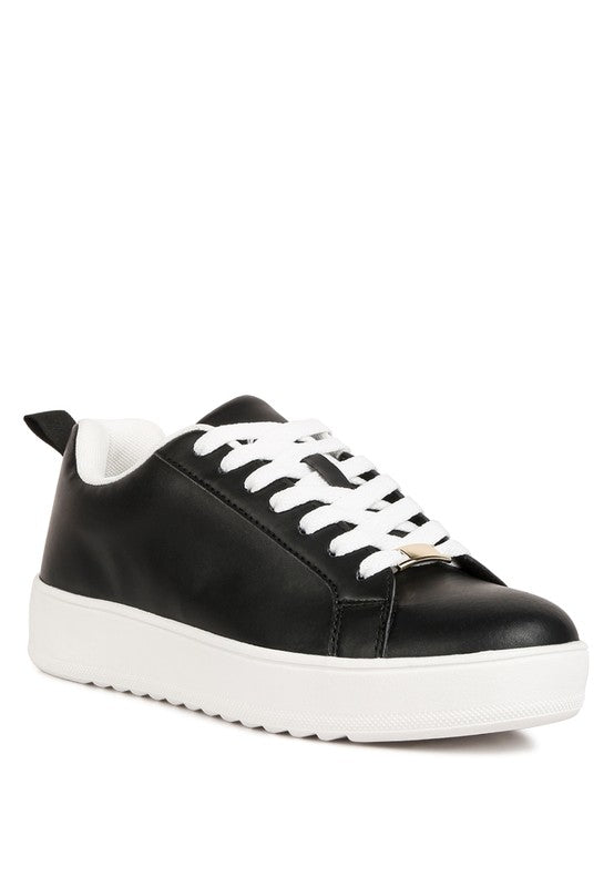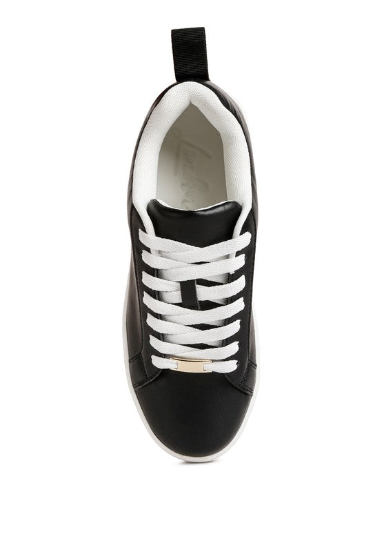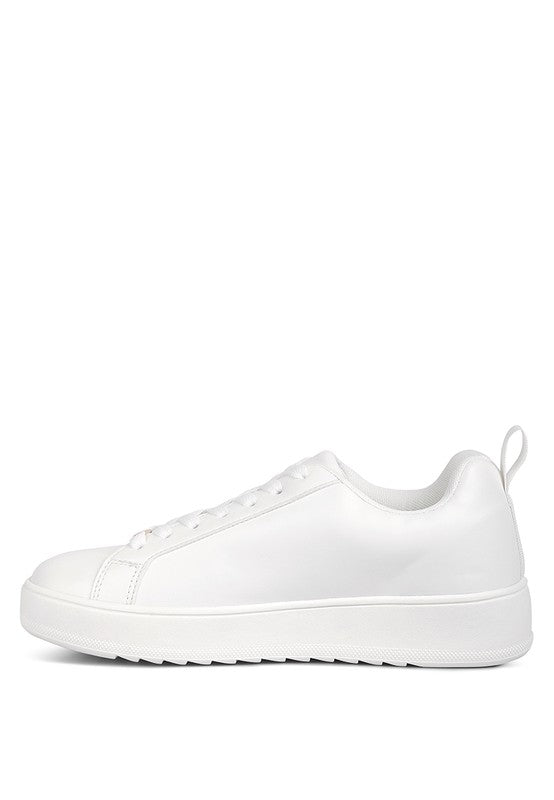 The faux leather sneakers look stylish, and bold, and have a classic design that is versatile. The chunky shoes are easy to wear with pull tabs and lightly cushioned insoles which offer comfort.