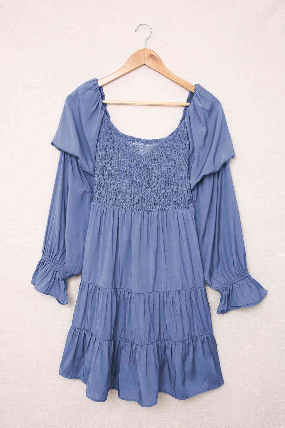 L: bust 34 in, waist 30 in, sleeve 27 in, length 29 in, hem width 98 in