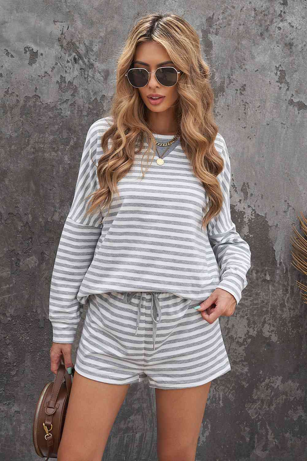 Striped Dropped Shoulder Top and Shorts Lounge Set