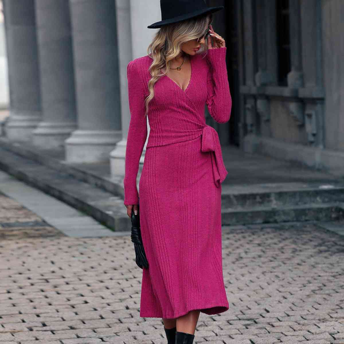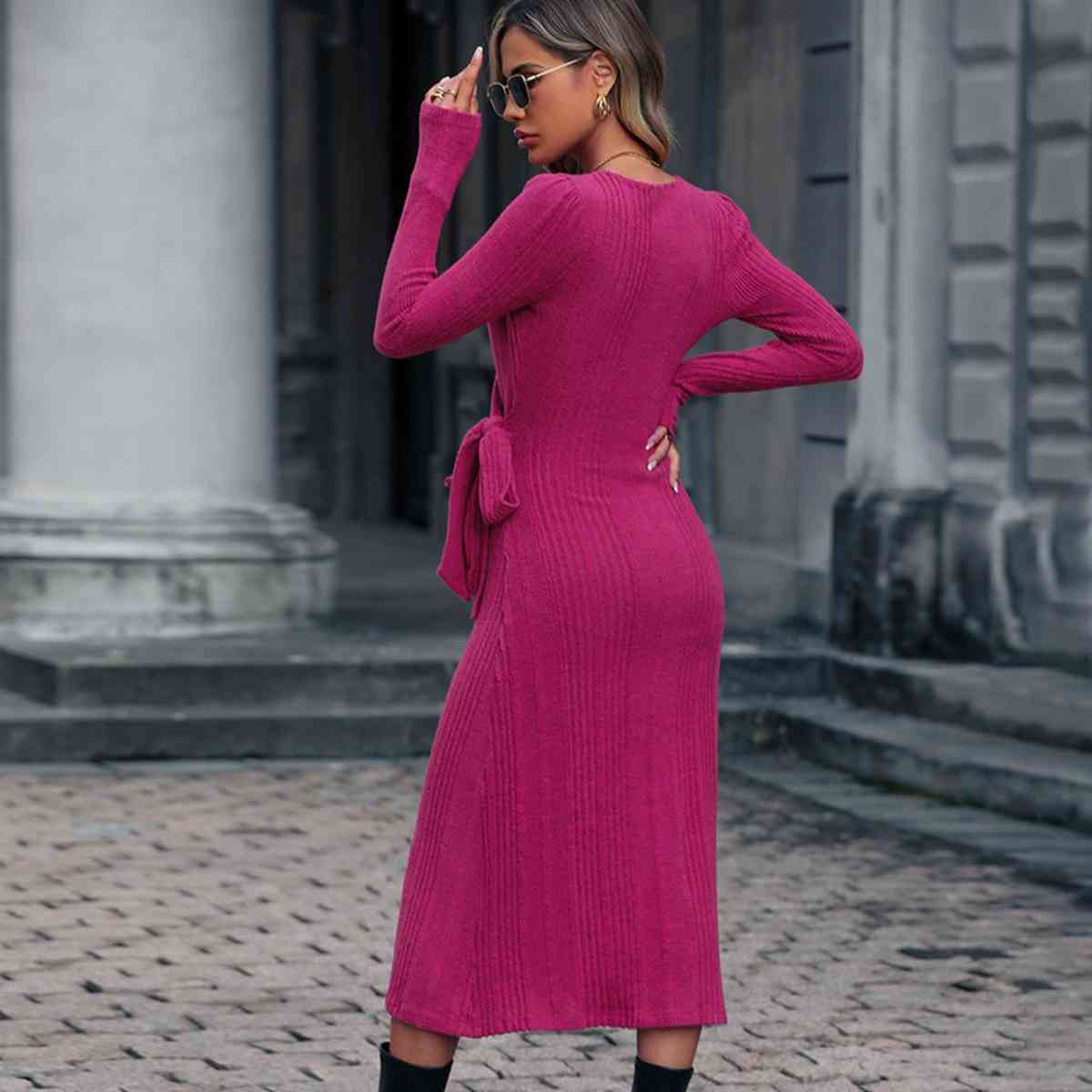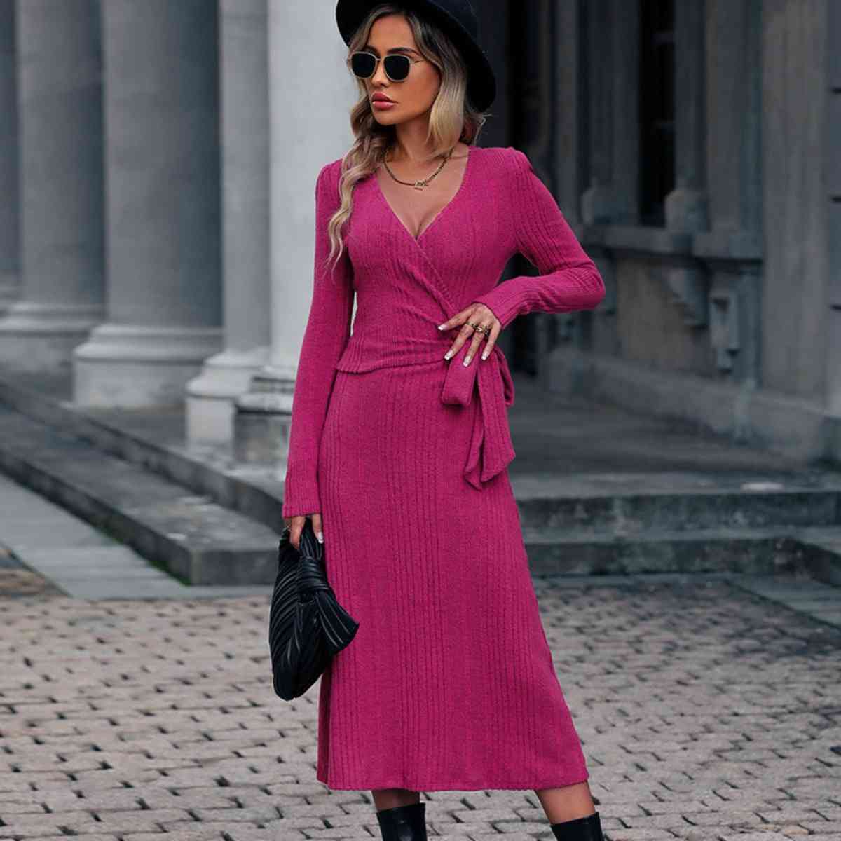 Surplice Neck Tied Long Sleeve Dress