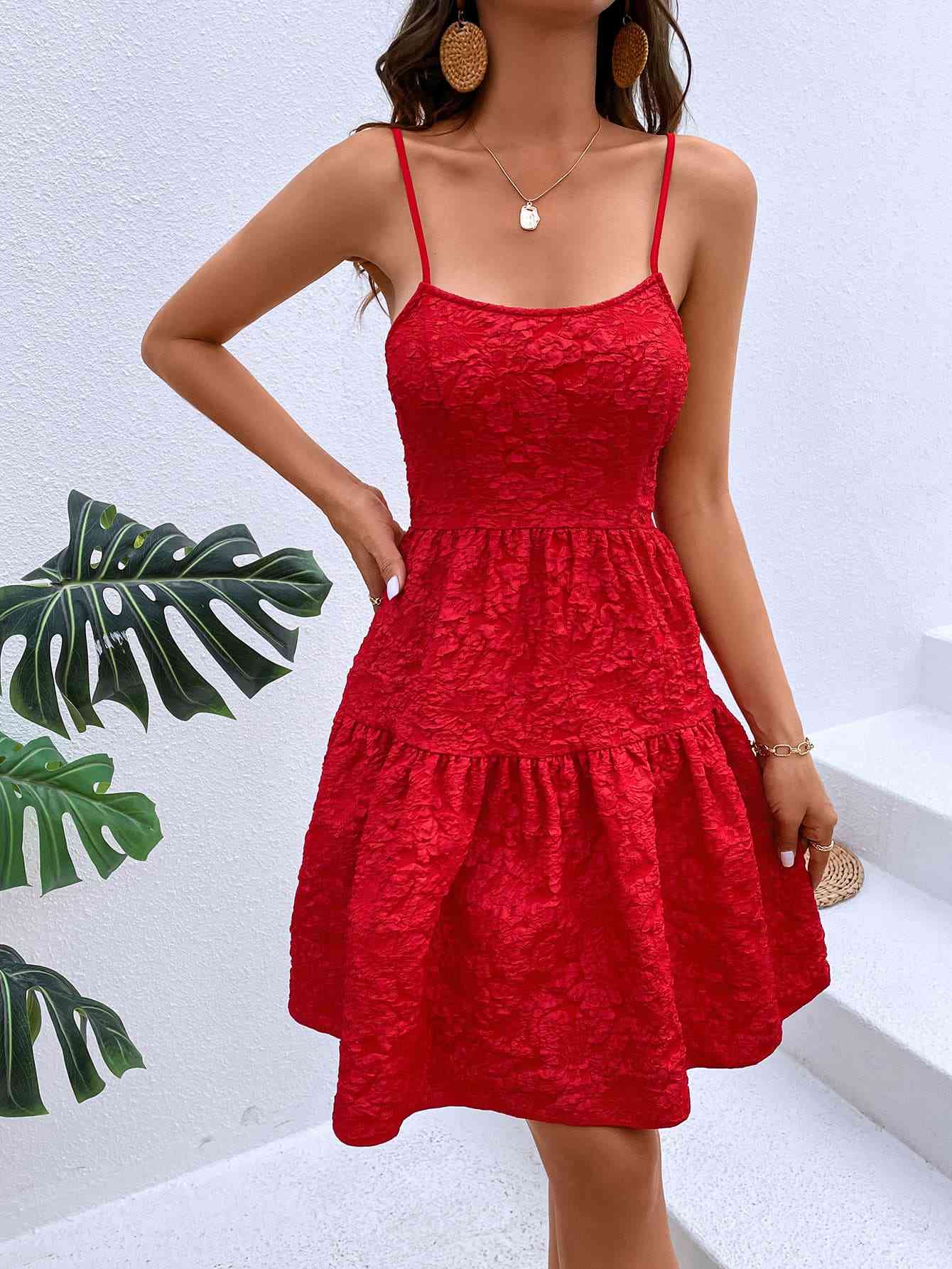 Textured Spaghetti Strap Cutout Dress