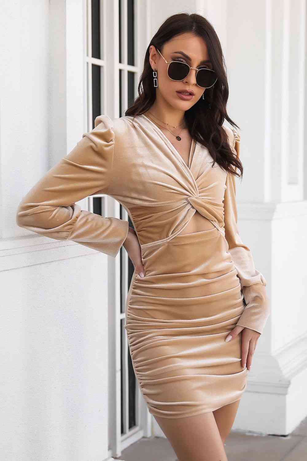 Twist Front Cutout Long Sleeve Dress