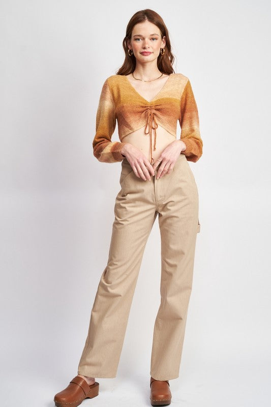 V NECK RUCHED CROP TOP